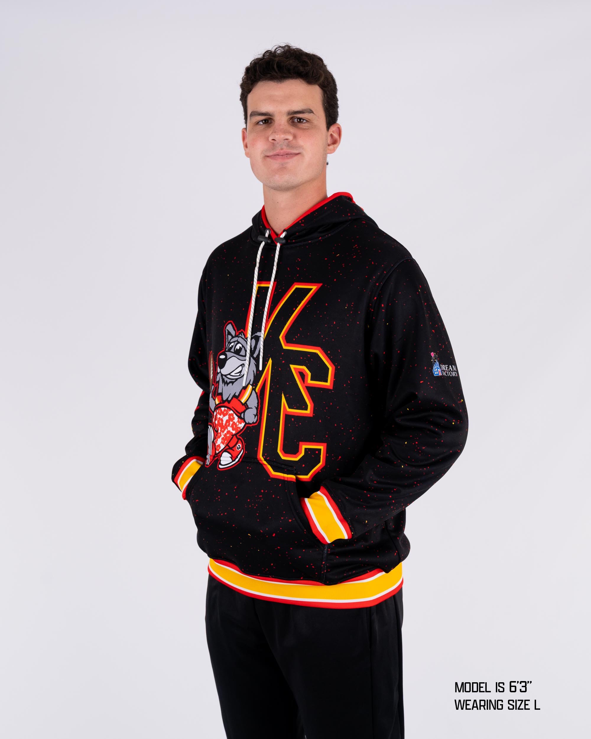 Details: Custom Sublimated Logo & Design with a Kangaroo Pouch Pocket and Drawstring Hood with Matte Finish Clasps